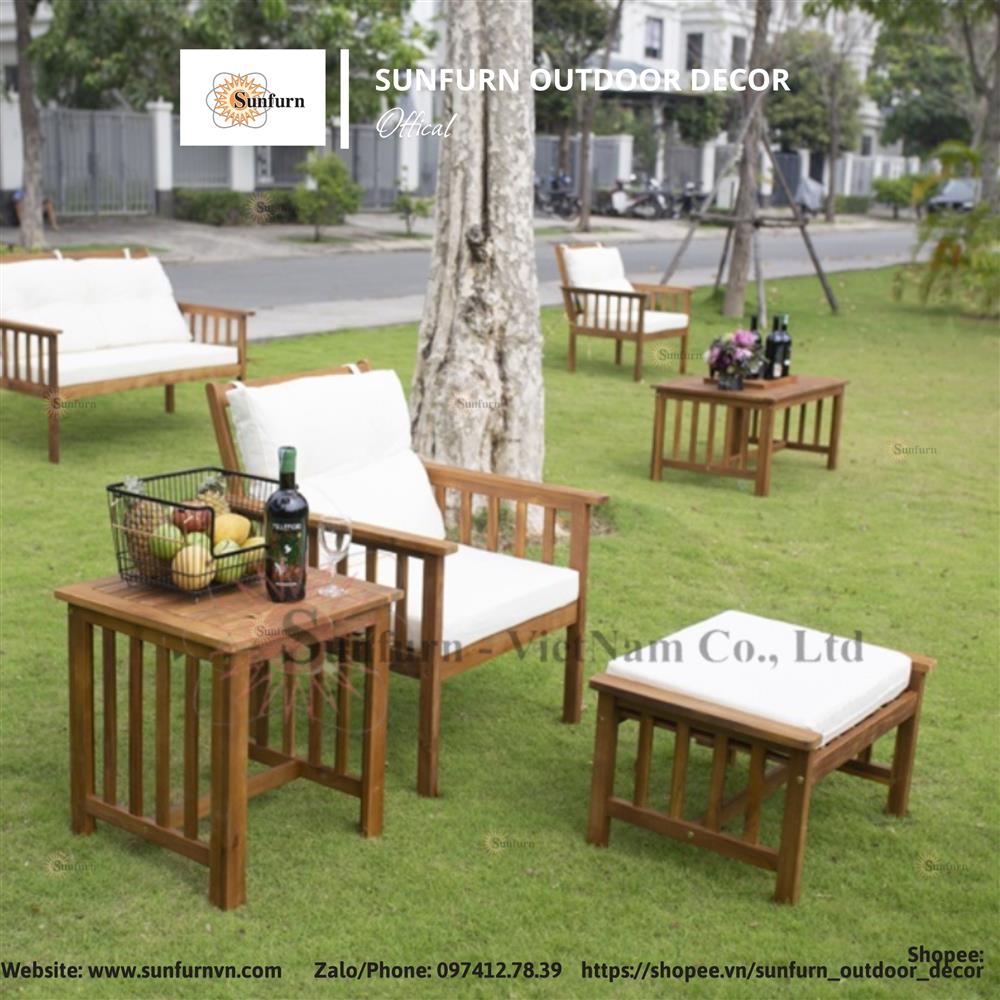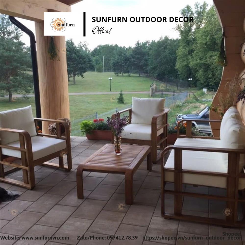 Năm 2026, xu hướng sử dụng bộ sofa gỗ ngoài trời hướng đến sự tối giản và khả năng thích nghi cao với thời tiết. Các dòng sofa gỗ ngoài trời Sunfurn đang dẫn đầu nhờ thiết kế nan thưa giúp thoát nước nhanh, cực kỳ phù hợp cho không gian cafe sân vườn hay biệt thự hiện đại.