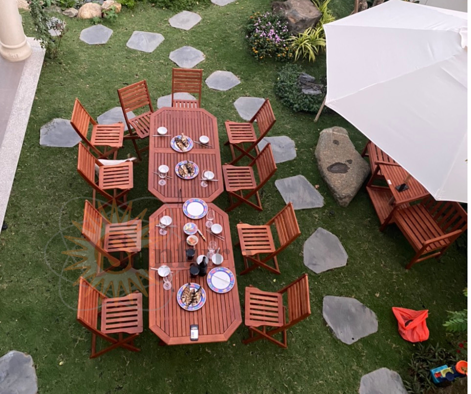 Trong xu hướng sống xanh – sống gần gũi với thiên nhiên, bàn ghế gỗ ngoài trời đang ngày càng được nhiều gia đình, quán cà phê sân vườn, resort và villa cao cấp lựa chọn. Mẫu bàn gỗ 140x85 cm kèm ghế gỗ gấp chính là giải pháp tối ưu để tạo nên những buổi tiệc tùng, sum họp ngoài trời đầy ấm áp và sang trọng.