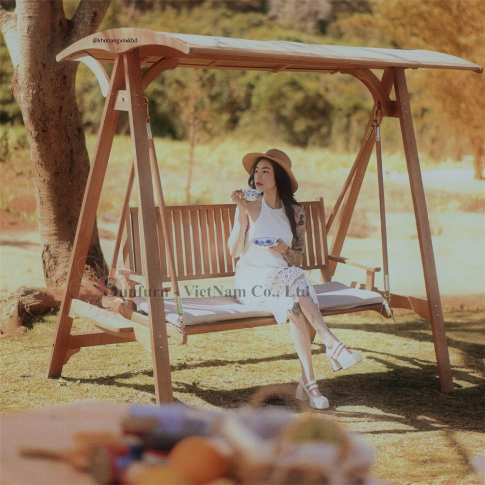 Xích đu gỗ sân vườn size 3 chỗ, dùng tại Đà Lạt