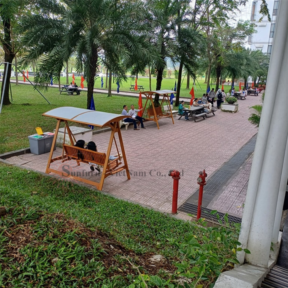 Mẫu xích đu gỗ sân vườn loại 3 chỗ tại 1 trường Đại Học ở Thành phố Hồ Chí Minh
