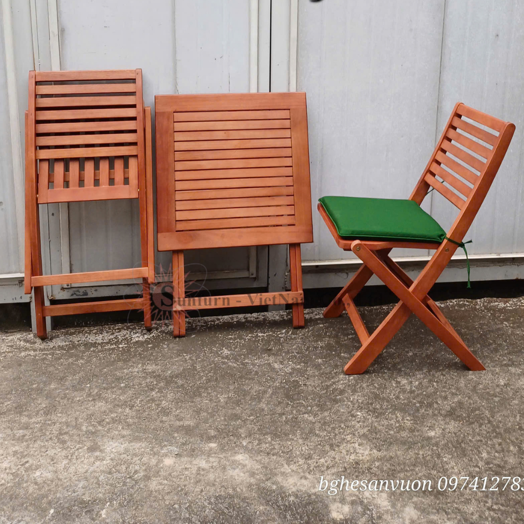 Bàn gỗ vuông gấp xếp cạnh 60 cm sân vườn