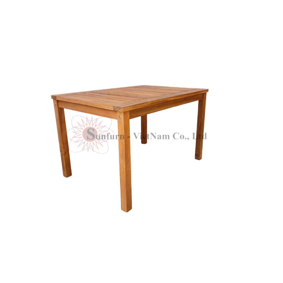 Với thiết kế hình chữ nhật cân đối, chiếc bàn không chỉ dùng tốt trong gia đình mà còn rất thích hợp cho quán café, homestay hay các khu nghỉ dưỡng nhỏ. Đây là sản phẩm được đánh giá cao nhờ sự đơn giản nhưng đầy tính ứng dụng trong thực tế.