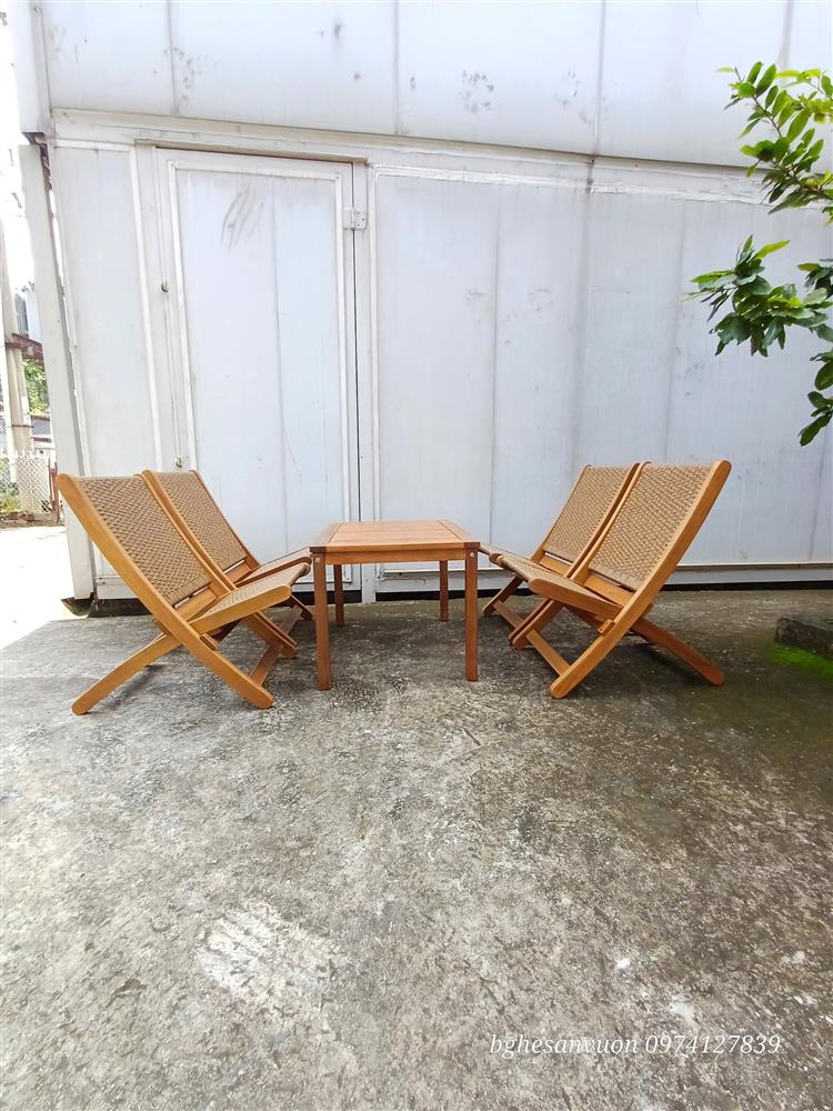 Ghế gỗ xếp dây mây nhựa nhỏ – dễ gấp gọn, phù hợp đi kèm với bàn HCN.