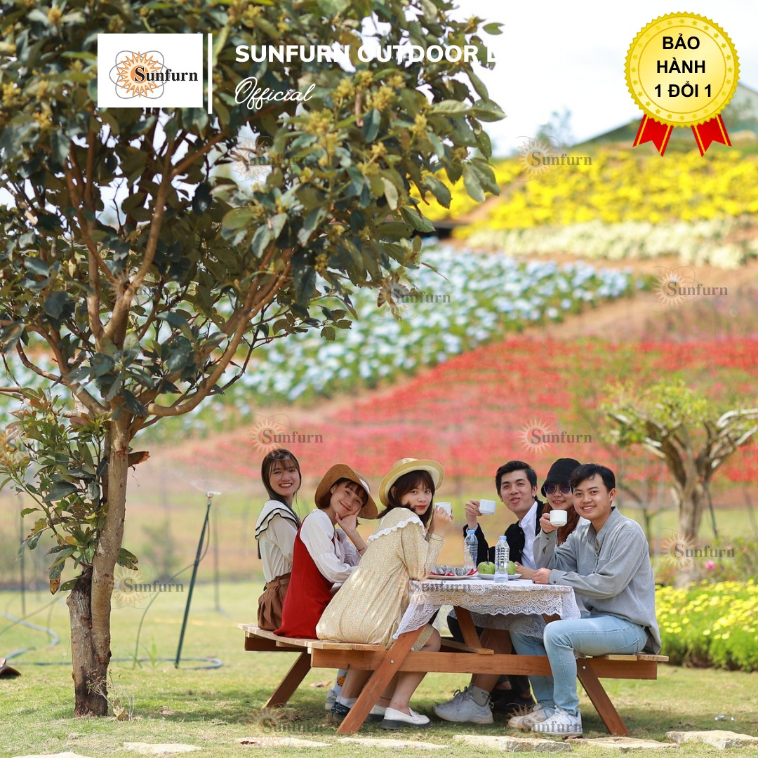 Sự kiện ngoài trời: Bộ Bàn Picnic Liền Ghế Gỗ Chò Tự Nhiên SUNFURN - Kèm Dù Gỗ Sân Vườn 3m rất phù hợp cho các buổi hội thảo, team building hoặc hoạt động cộng đồng.