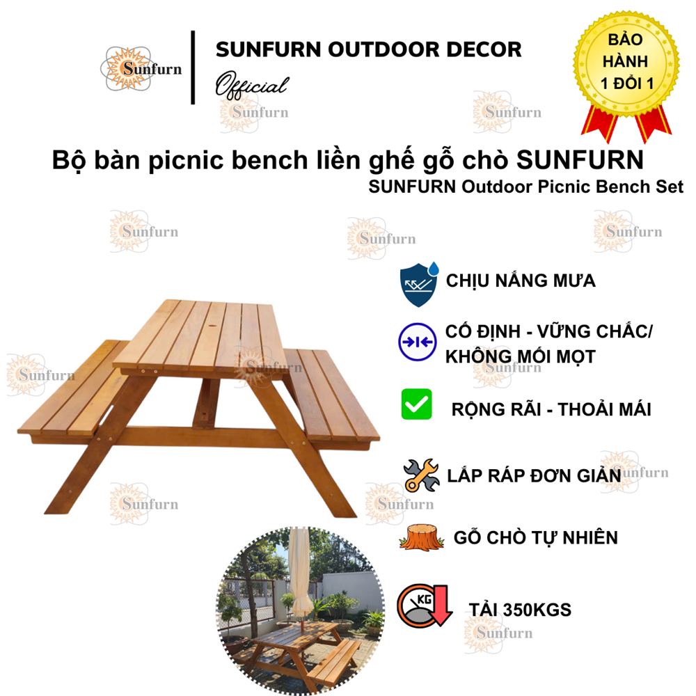 Bộ Bàn Picnic Liền Ghế Gỗ Chò Tự Nhiên SUNFURN có khả năng chống chịu thời tiết