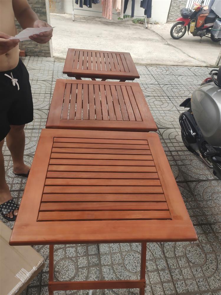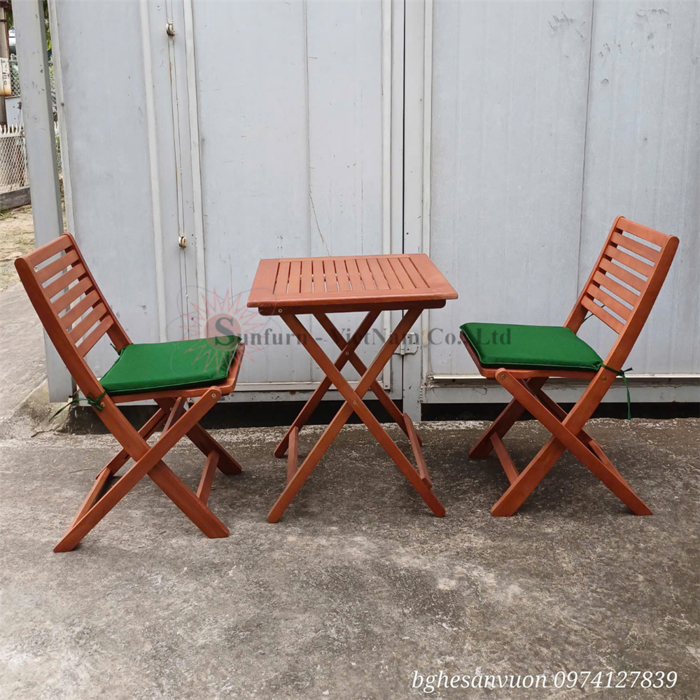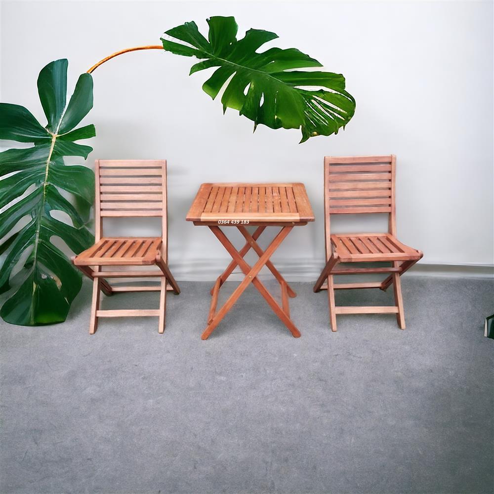 Bộ bàn ghế gỗ xếp gọn – Bàn vuông 60 cm và 2 ghế không tay, giải pháp tiết kiệm diện tích cho sân vườn nhỏ