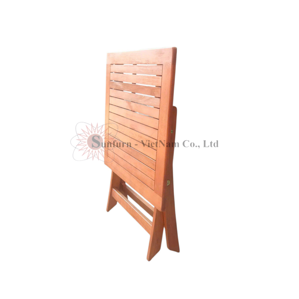 Mặt bàn sử dụng gỗ bạch đàn Nam Phi phôi dày, cứng cáp, có khả năng chịu lực tốt. Bàn gấp có thể tự đứng vững, an toàn và tiện lợi khi di chuyển hoặc cất giữ.