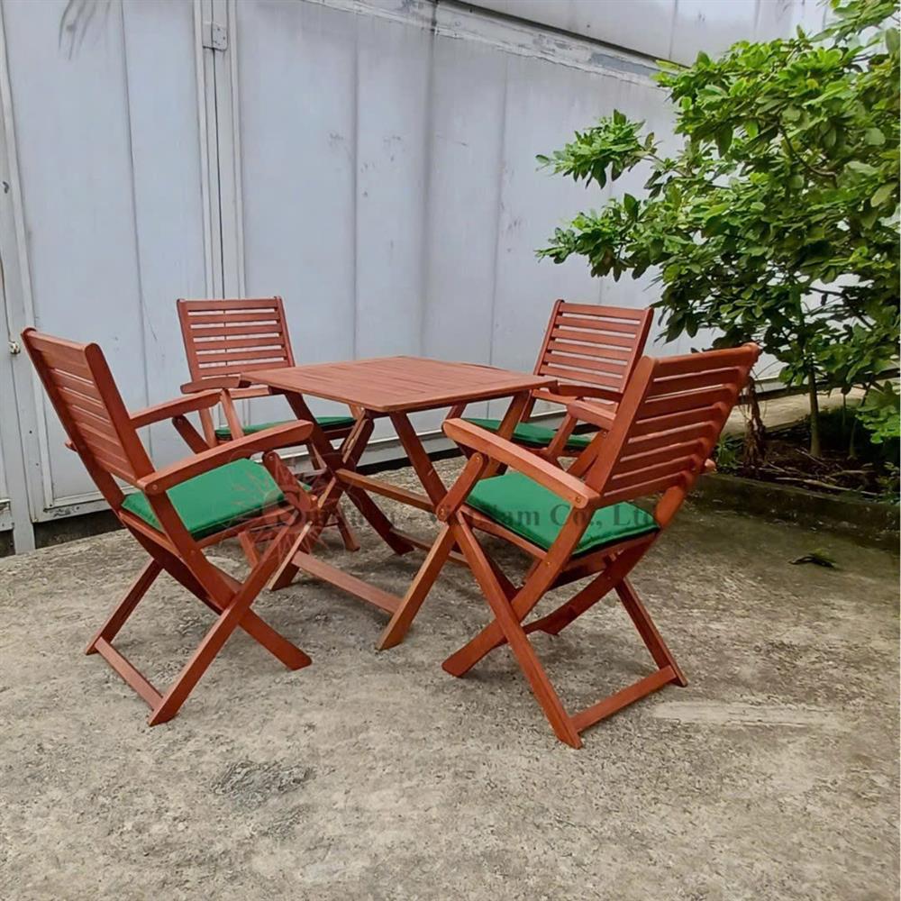 Combo bàn 70 cm và 4 ghế xếp gỗ có tay ngoài trời
