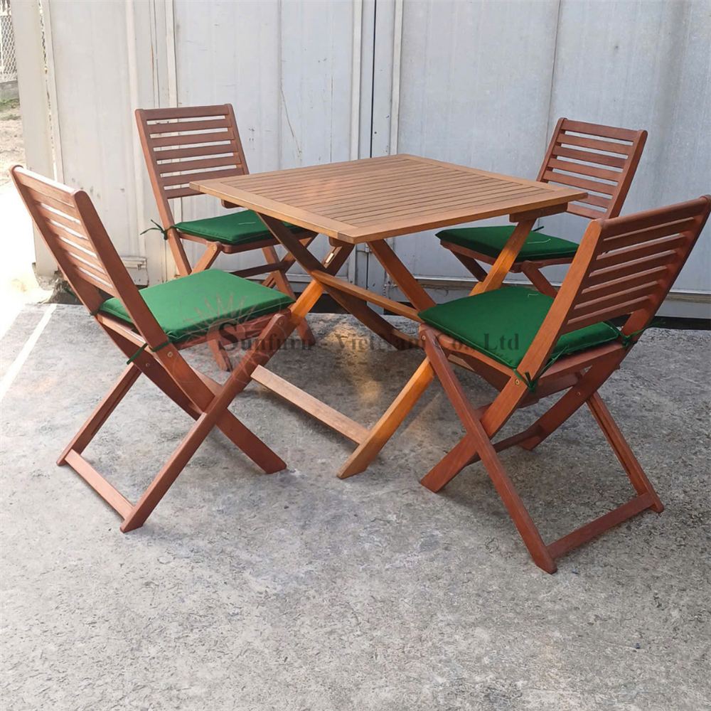 Combo bàn gỗ vuông 88 cm và 4 ghế xếp không tay – Giải pháp gọn gàng, tinh tế cho sân vườn và quán cà phê ngoài trời