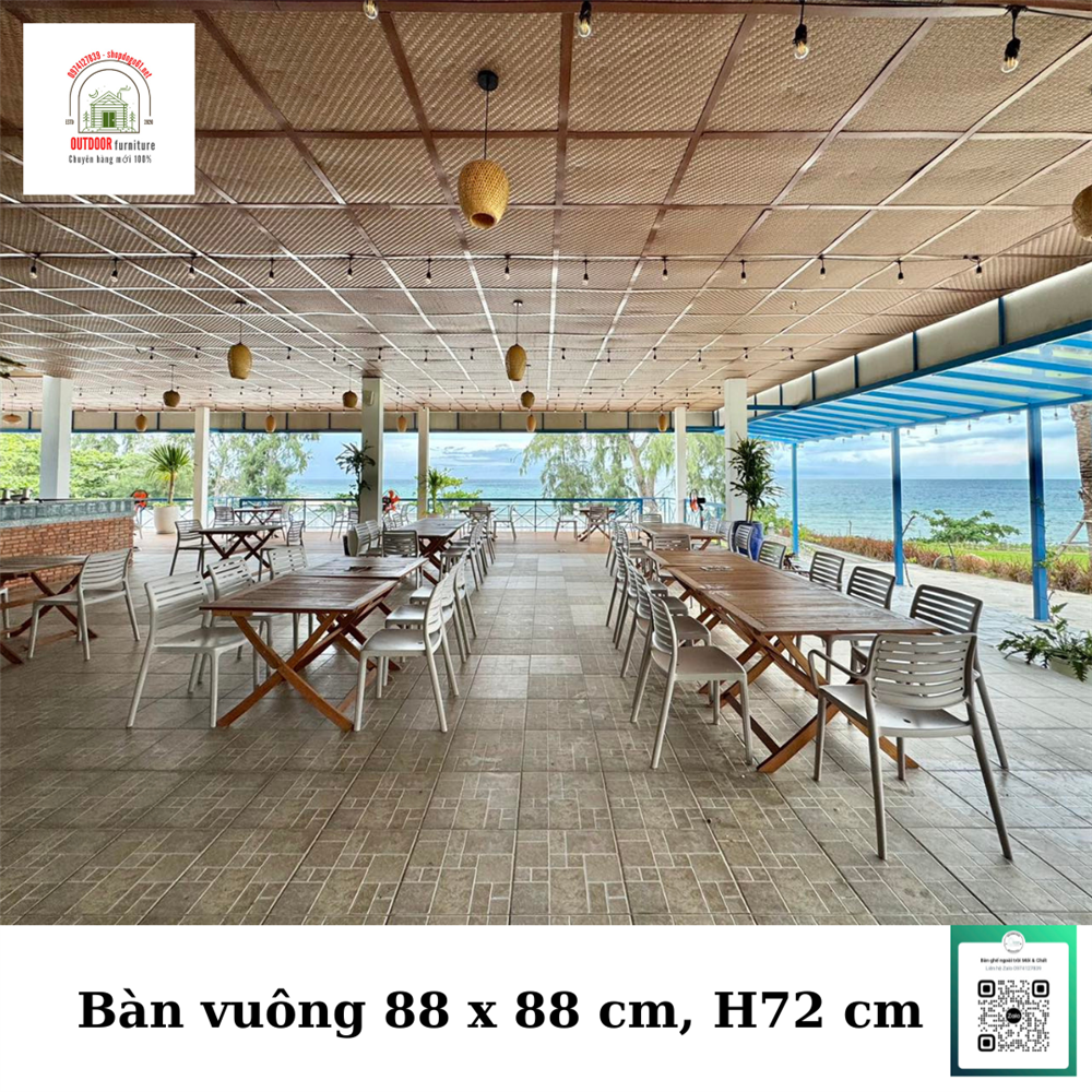 Bạn đang tìm một bộ bàn ghế vừa chắc chắn, vừa tiết kiệm diện tích, lại mang nét sang trọng cho không gian ngoài trời? Combo bàn gỗ vuông 88 cm và 4 ghế xếp gỗ không tay chính là lựa chọn lý tưởng, phù hợp cả cho gia đình lẫn nhà hàng, quán cà phê sân vườn.