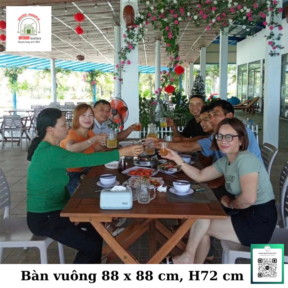Bàn tiệc gấp xếp 88 x 88 cm cho nhà hàng, dùng với đoàn 7 - 10 người
