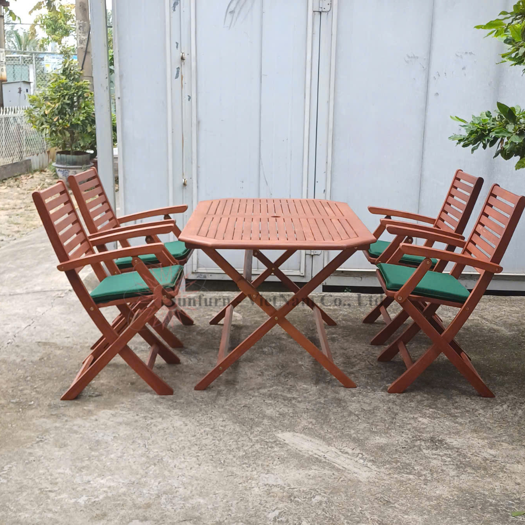 Combo bàn Octa 140 cm và 4 ghế xếp gỗ có tay ngoài trời