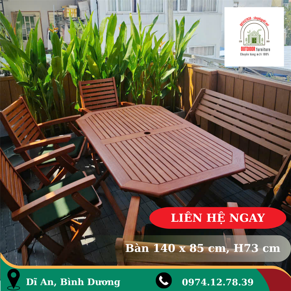 Trong những năm gần đây, bàn ghế ngoài trời ngày càng được nhiều gia đình, quán café, homestay lựa chọn. Điểm chung mà khách hàng tìm kiếm là độ bền, sự tiện lợi, tính an toàn và khả năng tiết kiệm diện tích. Combo bàn Octa 140 cm kết hợp với 4 ghế gấp gỗ và 1 bench ngoài trời chính là một trong những lựa chọn phù hợp nhất.