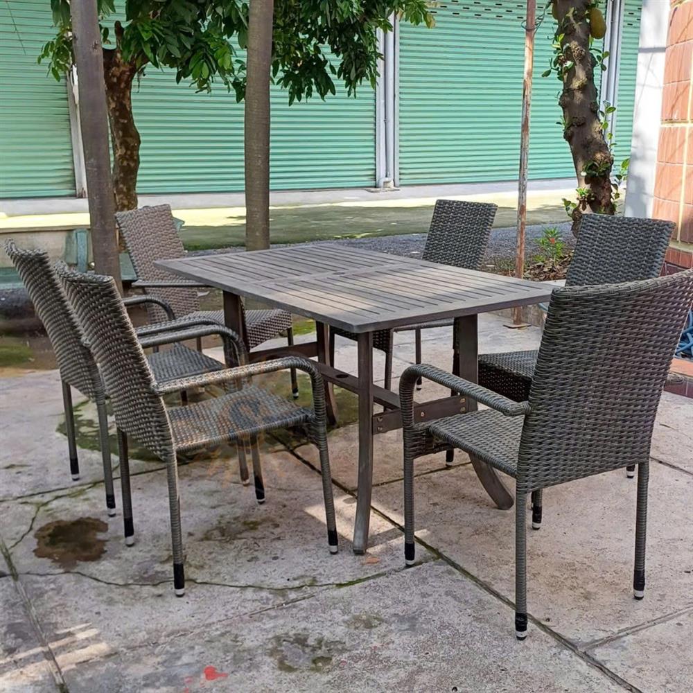 Combo bàn VF2 và 6 ghế stacking xám ngoài trời – Giải pháp tối ưu cho không gian rộng