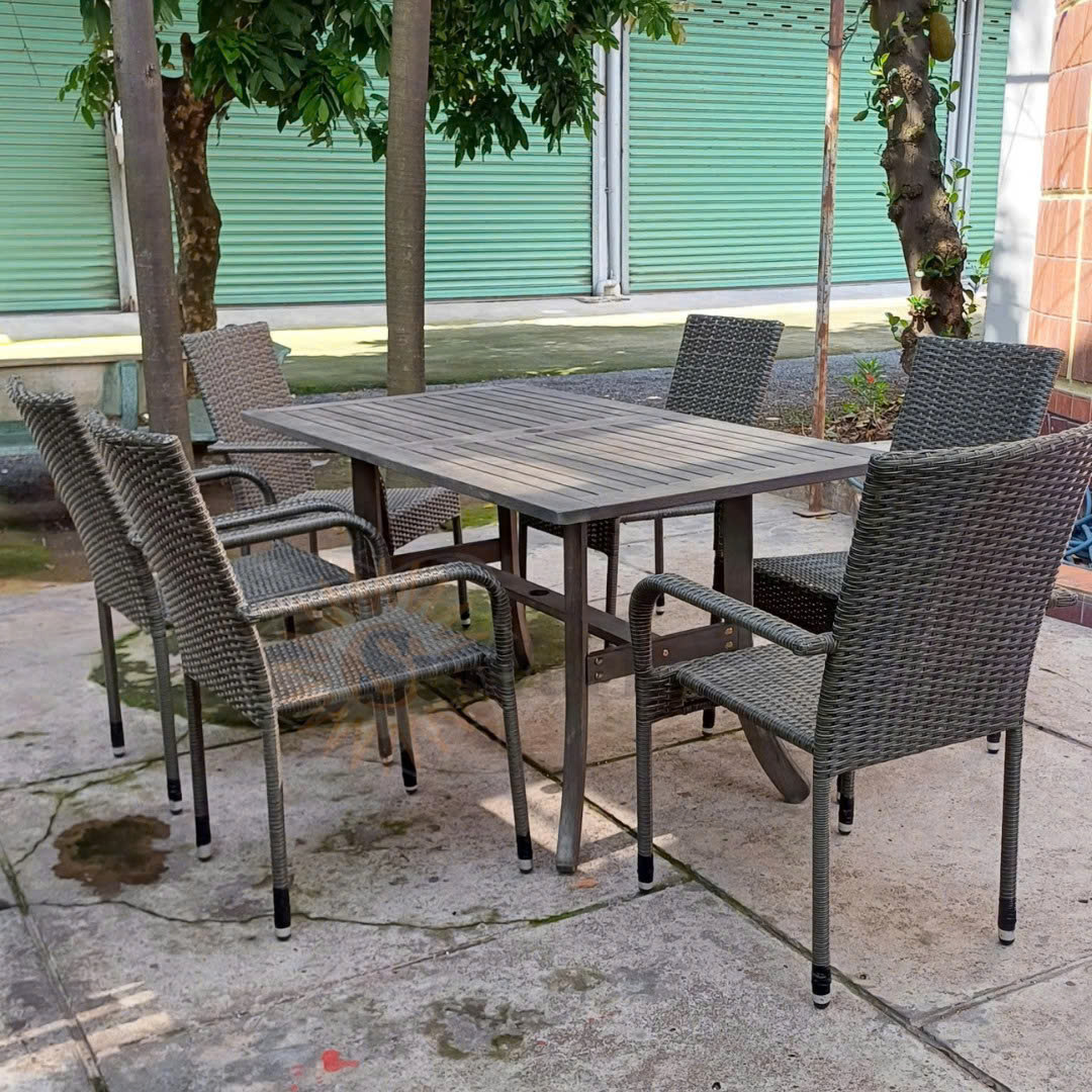 Tích hợp đa dạng: Bộ bàn VF2 cũng có thể kết hợp với các mẫu ghế khác như ghế dây dù, ghế nhựa giả mây để thay đổi phong cách không gian.