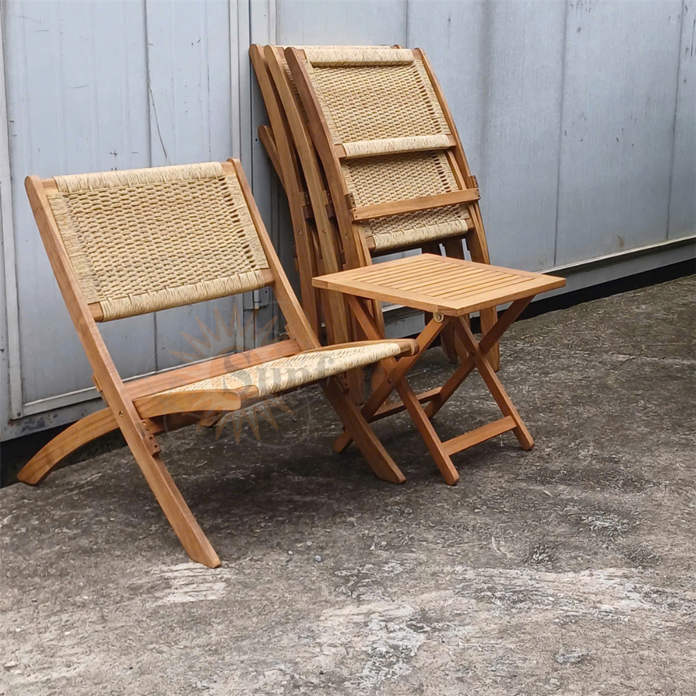 Bộ bàn ghế gỗ tràm hoa vàng dây mây nhựa gấp xếp – Điểm nhấn phong cách cho không gian sống hiện đại