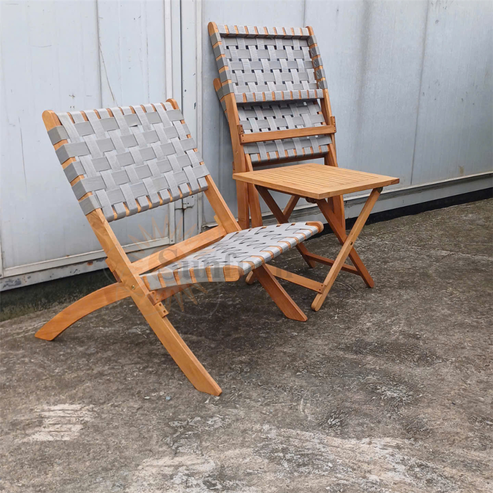 Bộ bàn ghế gỗ tràm hoa vàng dây đai dù xám gấp xếp – Giải pháp tiện lợi và bền đẹp cho không gian sống hiện đại
