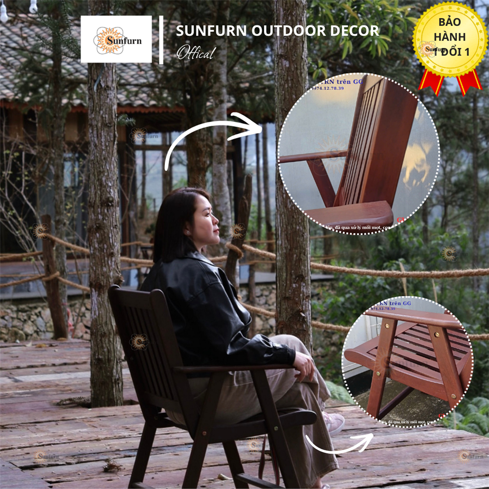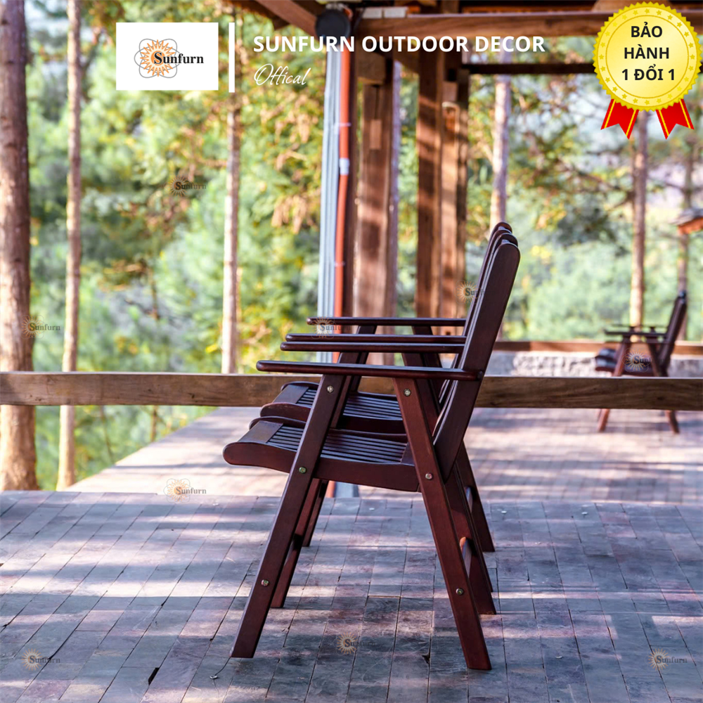 Ghế CAFE Gỗ Dầu Sân Vườn SUNFURN SF450 | Ghế Gỗ Ngoài Trời Không Thấm Nước | Chân chữ A – Chịu Lực 130kg