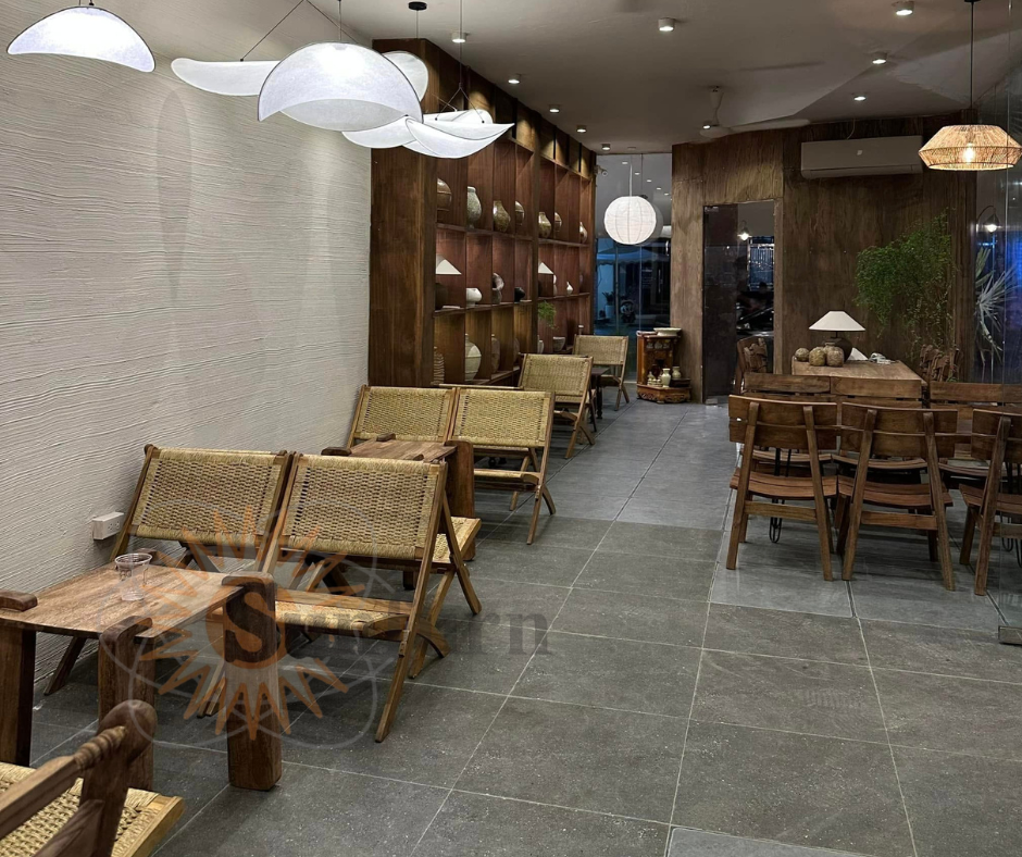 - Trong nhà: Kết hợp cùng bàn trà gỗ, mang đến không gian ấm cúng.