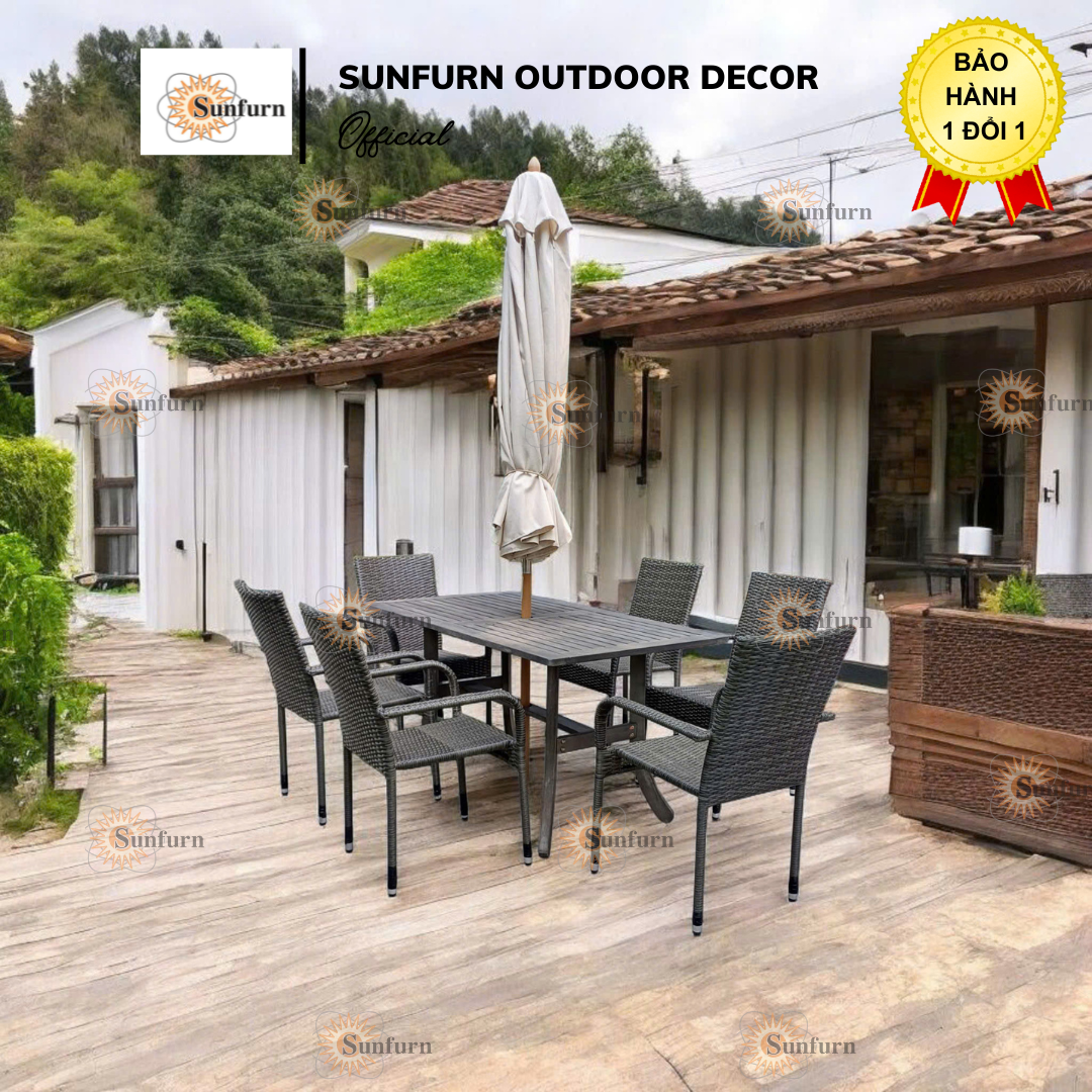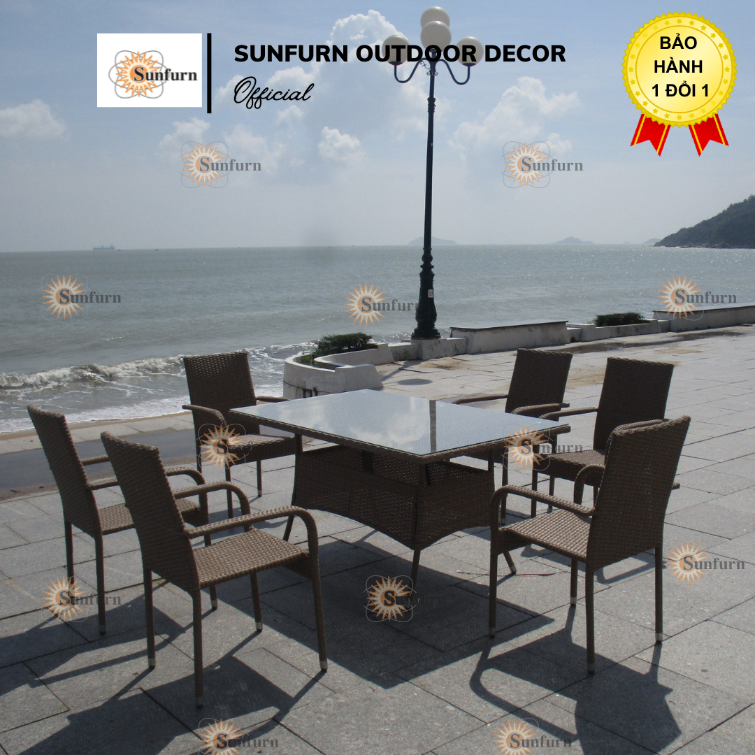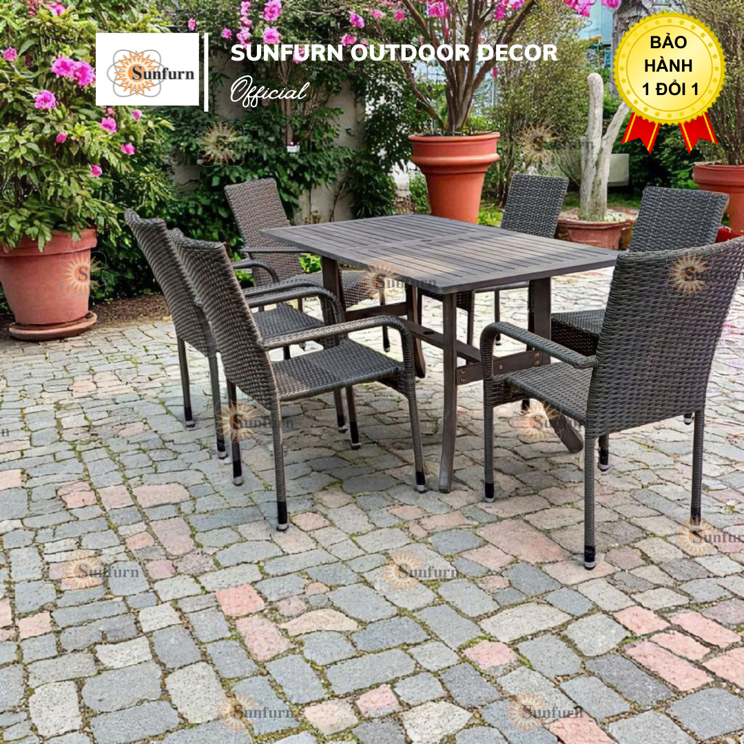 Bộ bàn ghế Mây Nhựa Xếp Chồng (Stacking) SUNFURN dành cho ngoài trời, sân vườn
