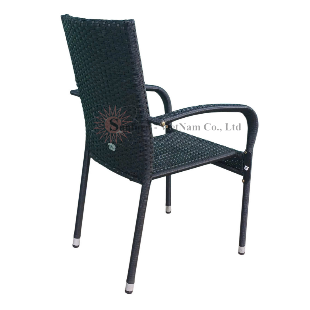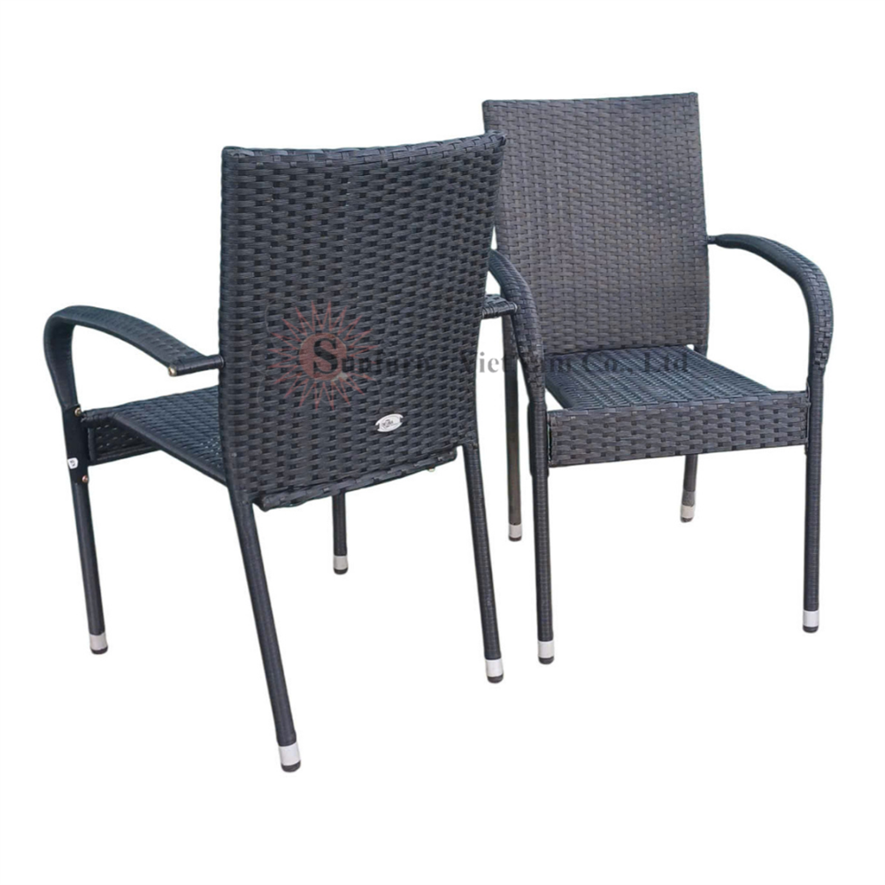 Ghế Mây Nhựa Xếp Chồng (Stacking) SUNFURN – Ghế mây nhựa khung sắt đen sang trọng cho không gian ngoài trời, sản phẩm xuất khẩu chính hãng tại Sunfurn VN