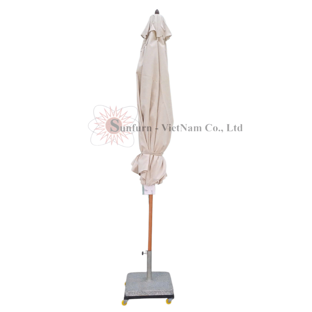 Hôm nay, chúng tôi giới thiệu đến bạn mẫu dù gỗ bạch đàn Nam Phi size 250 cm kèm đế đá cement hoa cương tích hợp bánh xe, một sản phẩm chuẩn xuất khẩu, đã qua kiểm định chất lượng và đặc biệt phù hợp cho mọi không gian ngoài trời.