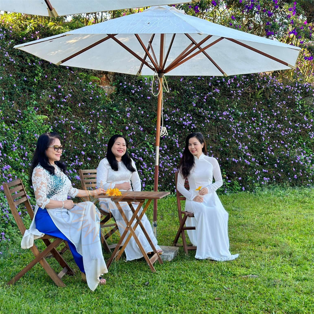 Áo dù: Màu trắng CD, dễ phối với mọi không gian sân vườn, từ phong cách vintage, hiện đại cho đến resort nhiệt đới.