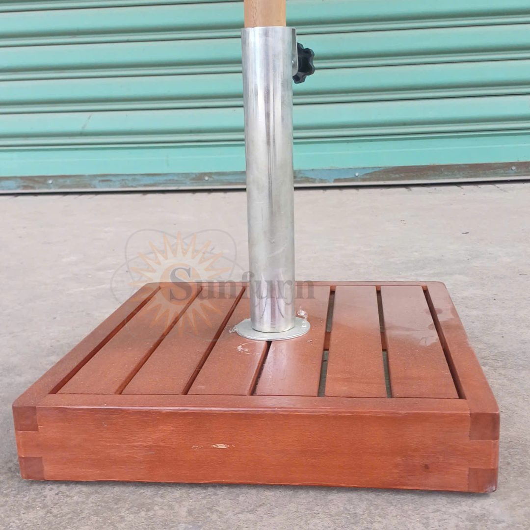 Nếu các dòng dù khác thường sử dụng đế bằng sắt, đá hay cement thì đế gỗ chính là “điểm lạ” làm nên sự độc đáo. Thiết kế này không chỉ mang tính thẩm mỹ cao mà còn đồng bộ với khung gỗ, tạo nên tổng thể hài hòa và sang trọng hơn hẳn.