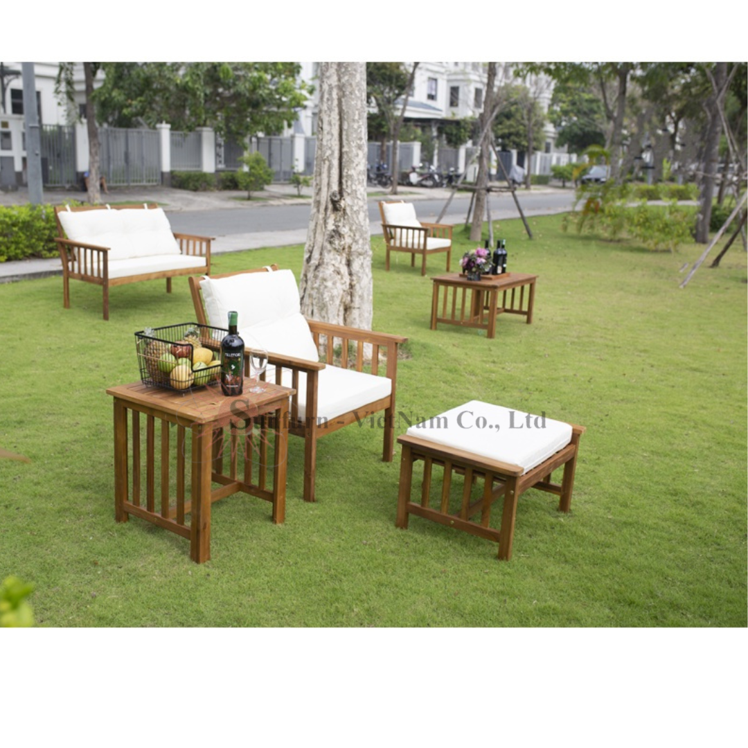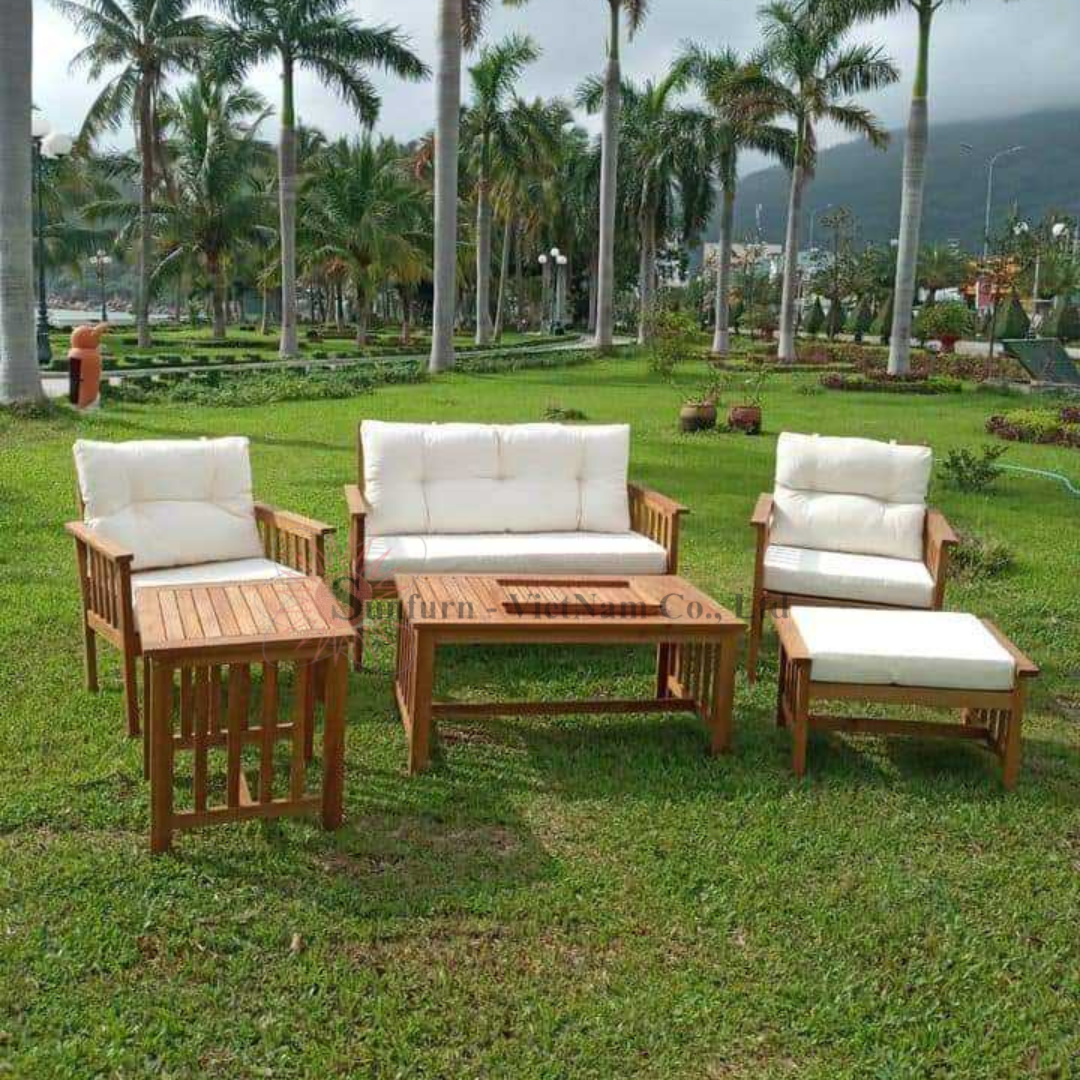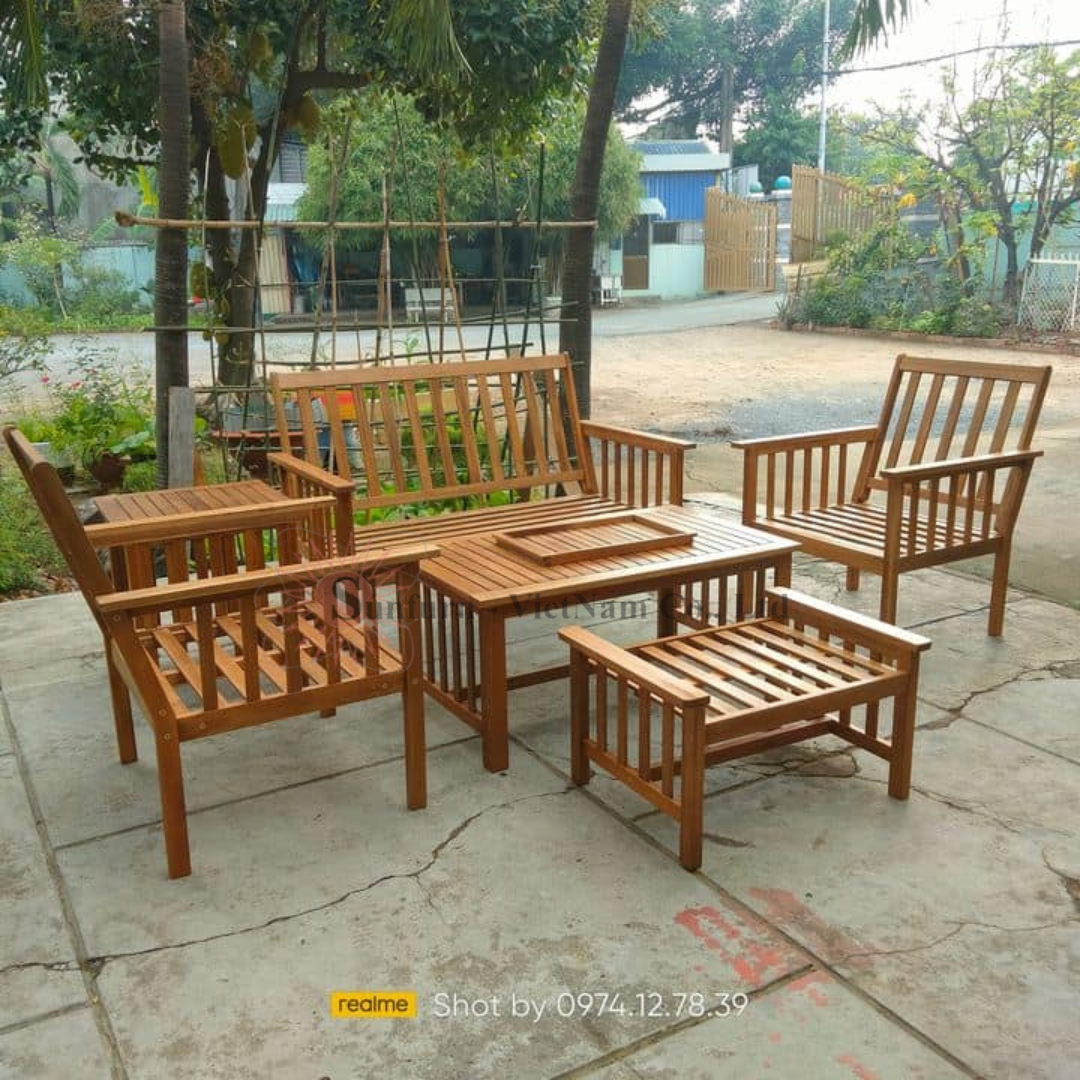 Bộ Sofa Morocco Sân Vườn Gỗ Tràm Solid 7 Món – Hàng Xuất Khẩu Chính Hãng, Sang Trọng và Bền Bỉ