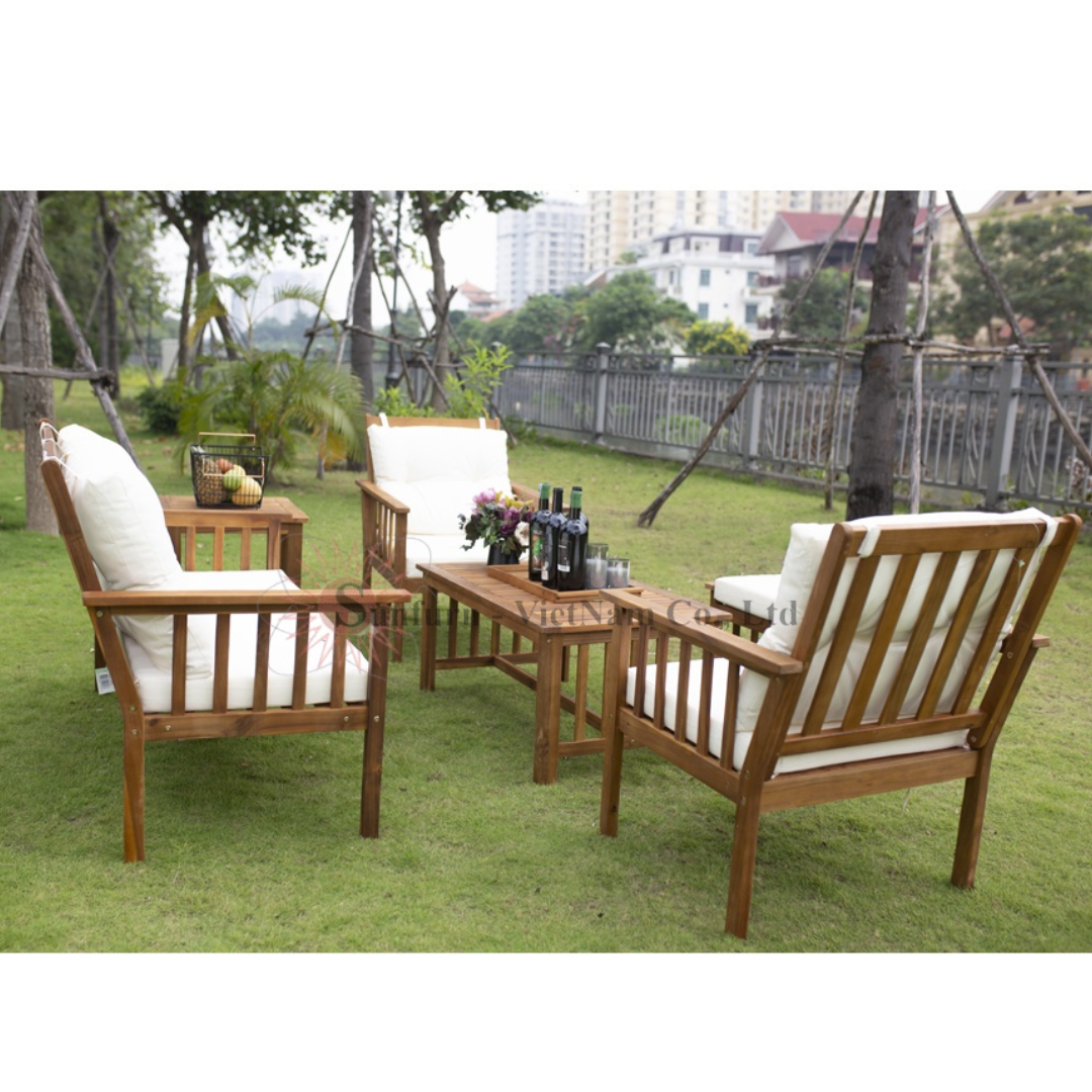 Nếu bạn cần không gian nhỏ gọn, có thể tham khảo các dòng sofa Bordauxep 4 món khung gỗ sơn PU trắng, phù hợp cho ban công và sân thượng.