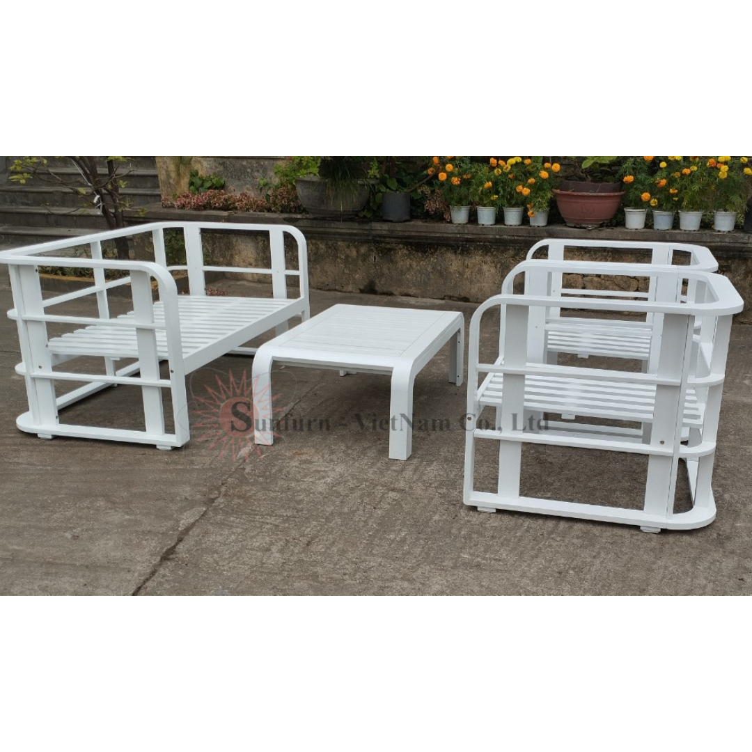Sofa Ngoài Trời Gỗ Tràm Solid Sơn PU trắng