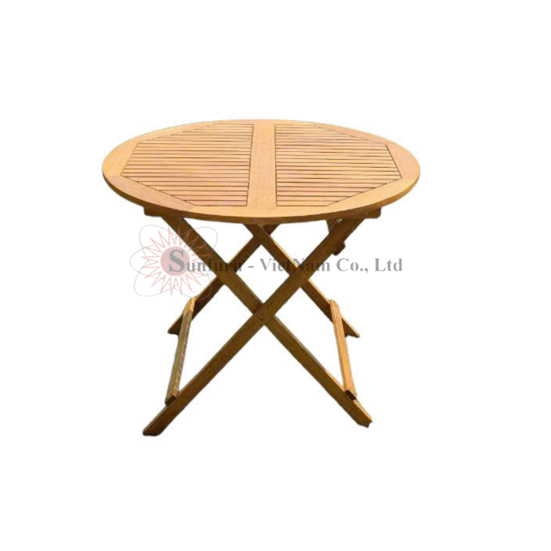 Combo bàn tròn D90 cm và 4 ghế xếp gỗ không tay ngoài trời – Nhỏ gọn, tiện lợi, bền chắc