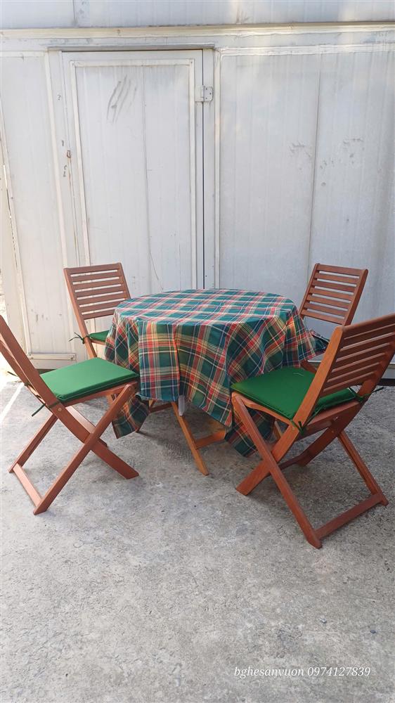 [THANH LÝ] Combo bàn tròn D90 cm + 4 ghế xếp gỗ ngoài
