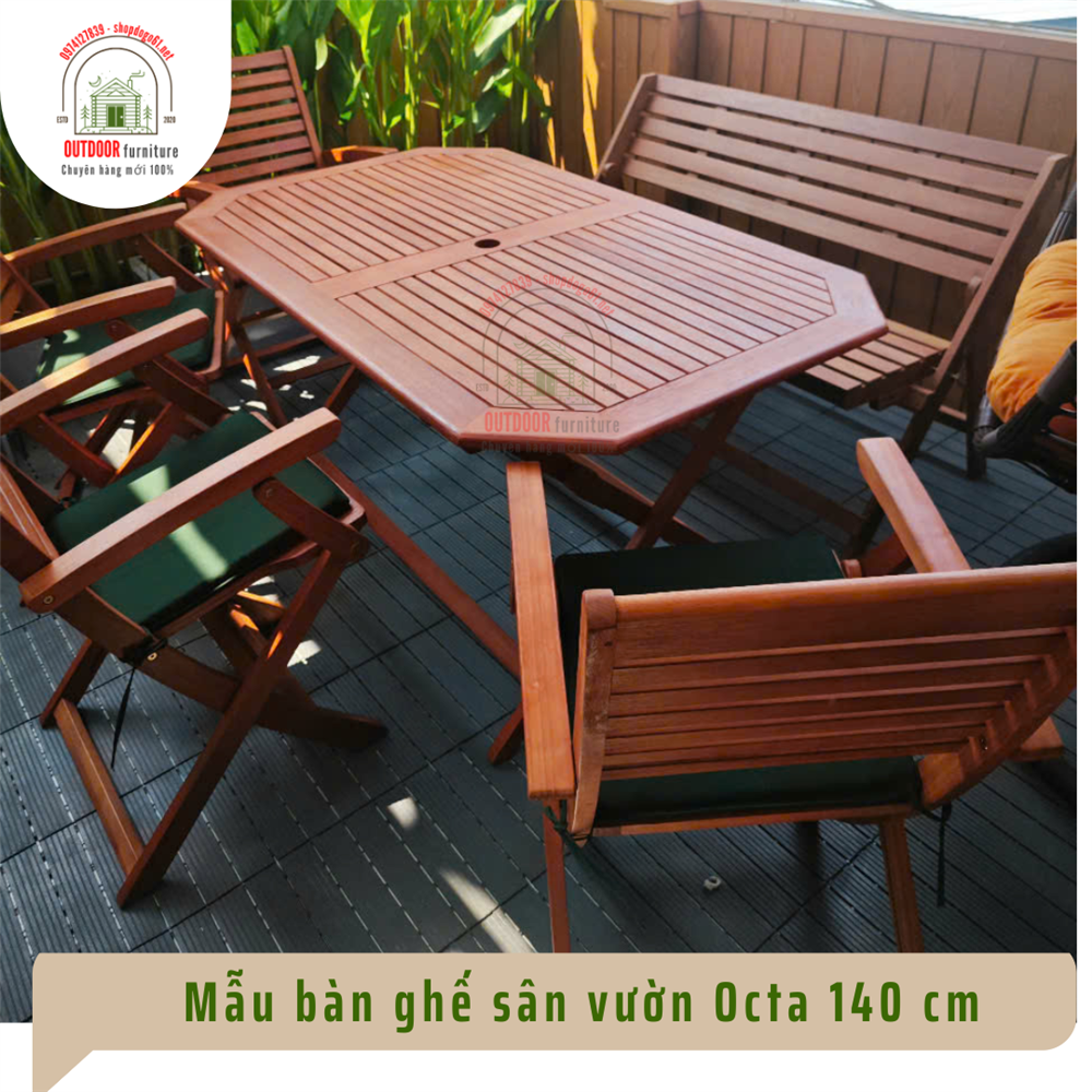 👉 Nếu bạn muốn kết hợp đồng bộ, có thể tham khảo thêm mẫu bàn Octa gỗ bạch đàn 140 cm kèm ghế băng xếp – bộ bàn ghế sân vườn phù hợp cho gia đình và sân vườn
