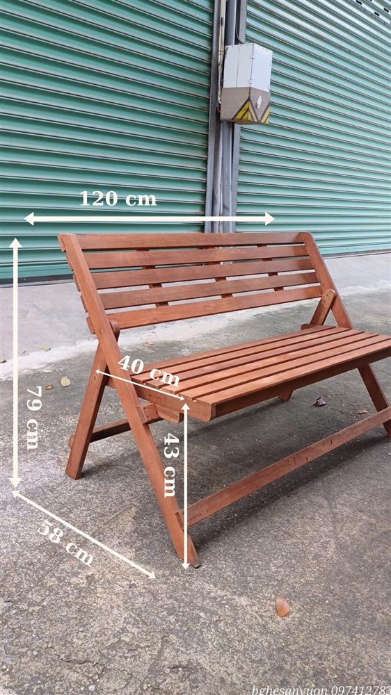 Ghế bench xếp 2 chỗ gỗ dầu tự nhiên cao cấp – Bền đẹp cho không gian trong nhà và ngoài trời