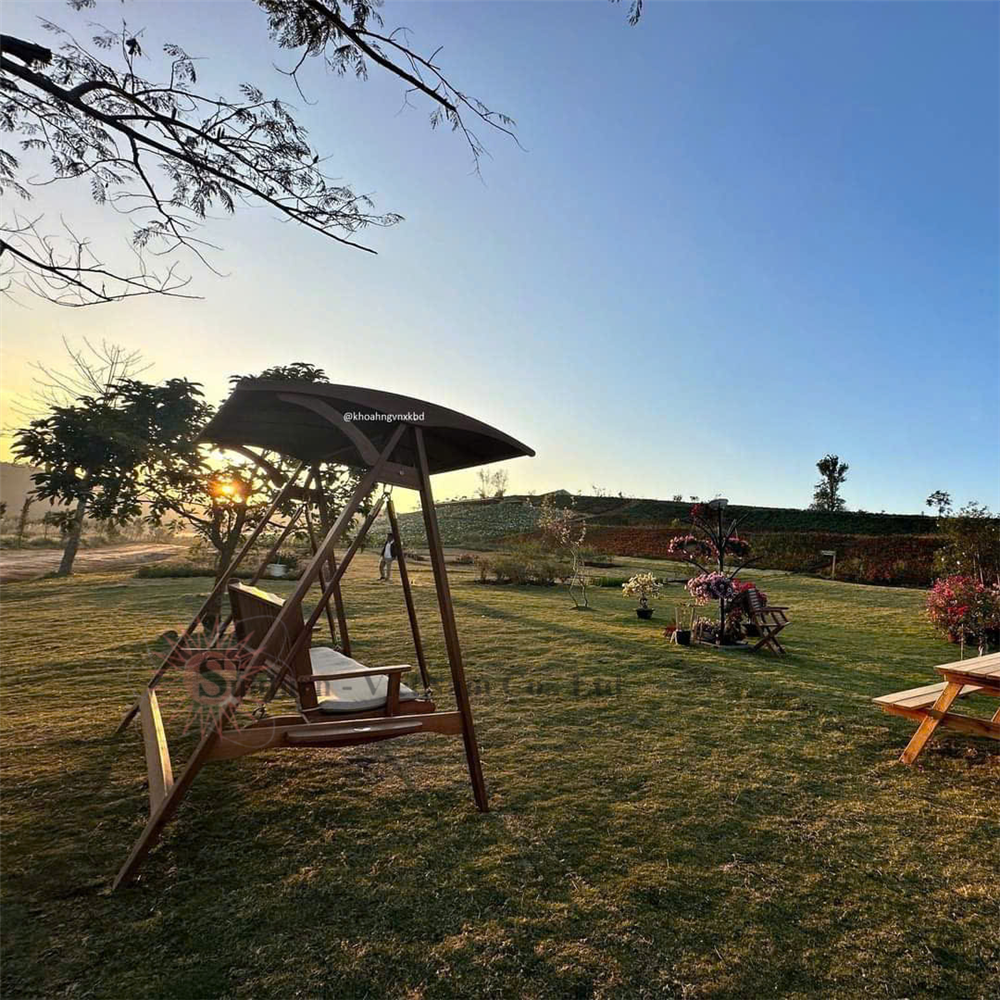 Xích đu gỗ sân vườn lắp đặt tại Farm Di Linh, Lâm Đồng