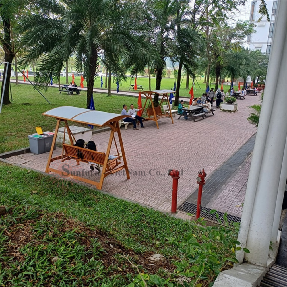 Xích đu gỗ sân vườn lắp đặt tại 1 trường Đại Học ở Thành phố Hồ Chí Minh