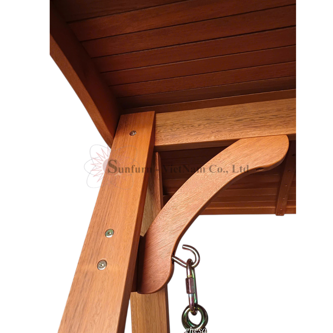 Phần bên trong của mái che xích đu gỗ 3 chỗ. Mái khít và chắc chắn. Ảnh chụp tại SUNFURN VN