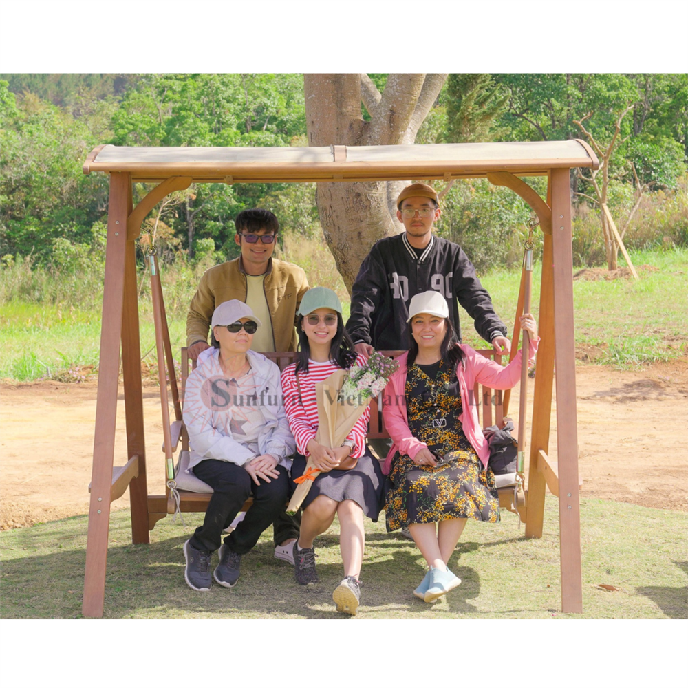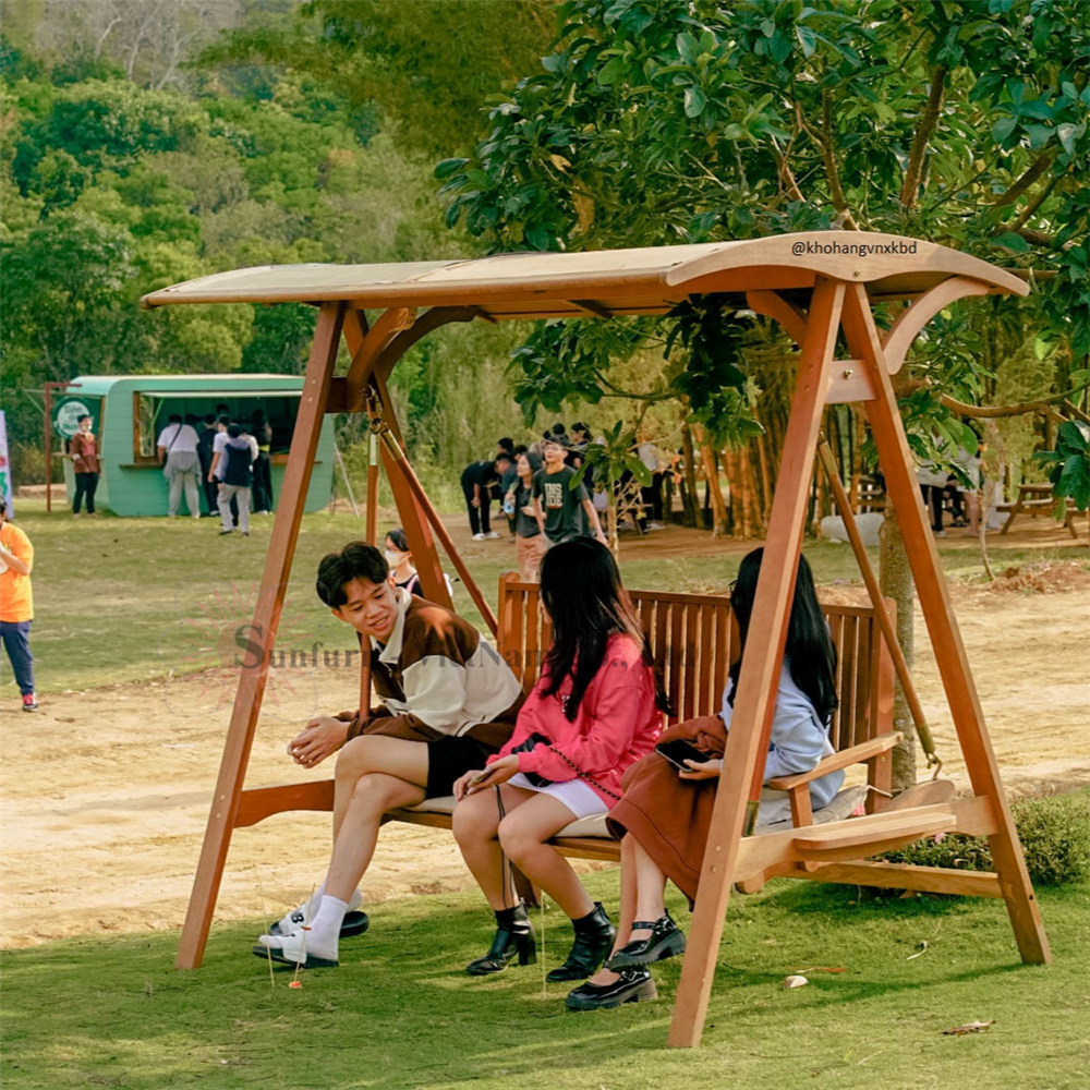 Xích đu 3 chỗ mái gỗ sân vườn đặt tại Lake Farm Đà Lạt