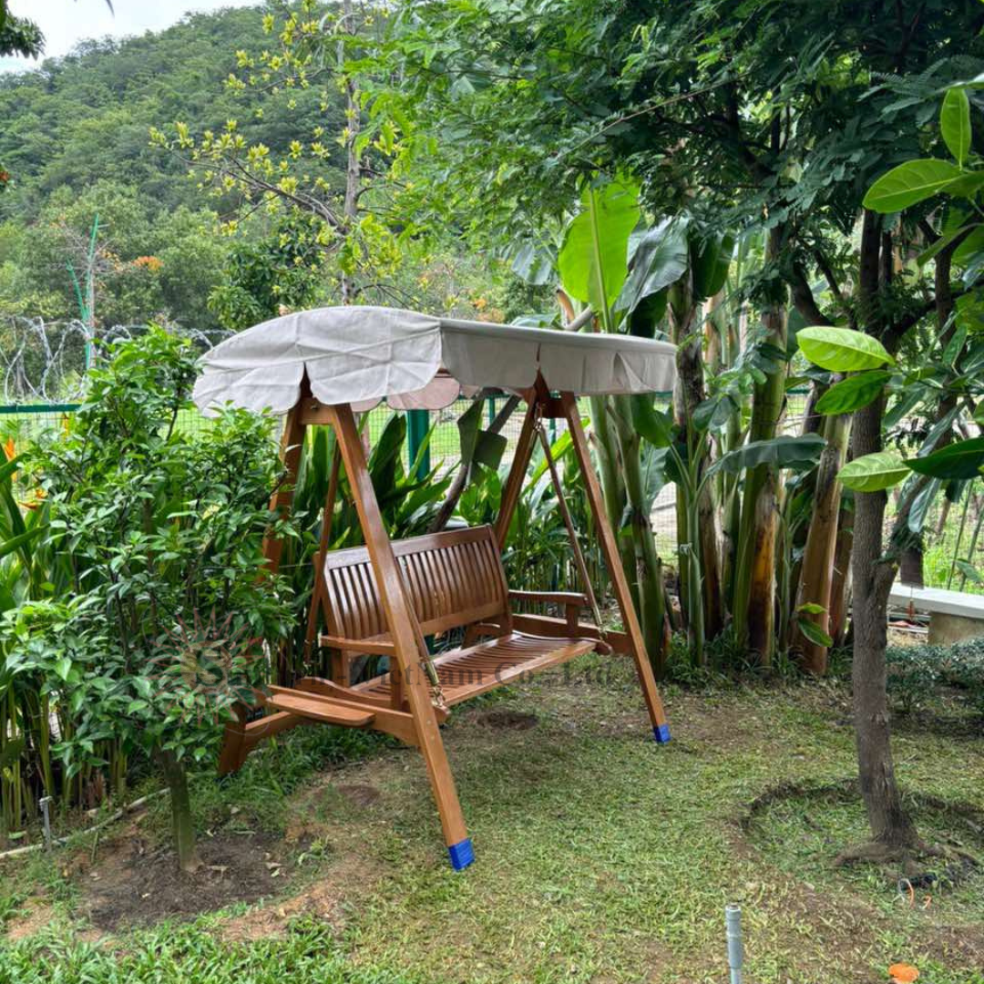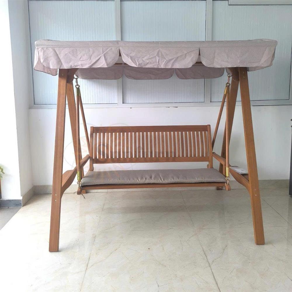 Xích đu gỗ mái vải ngoài trời 3 chỗ – hàng mẫu sản xuất, sang trọng và tiện dụng